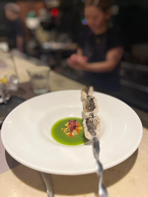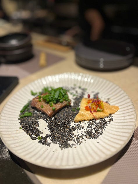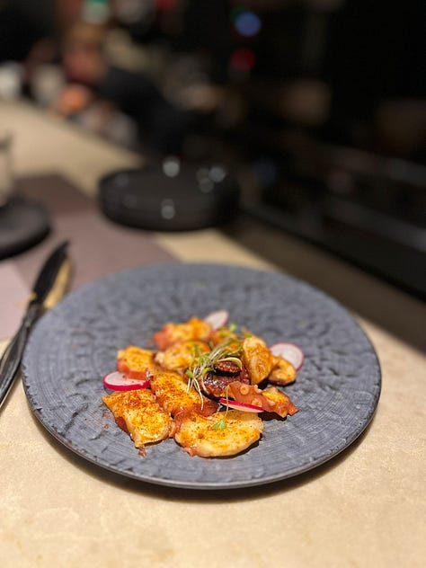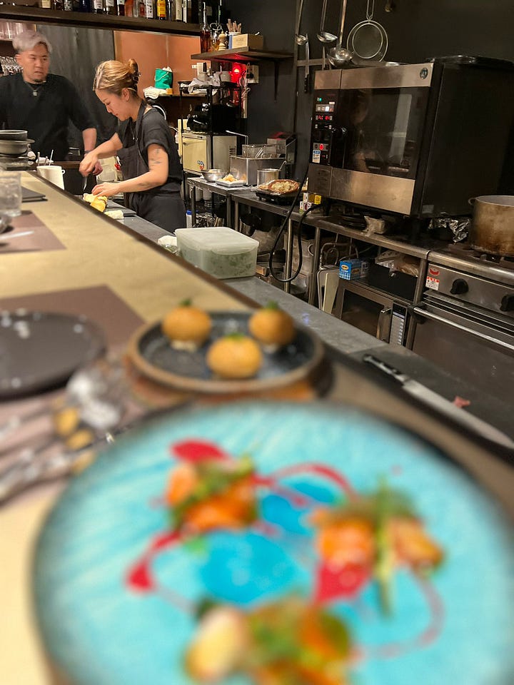 In Fujiyoshida, Dad and Alex went on the prowl for a nice spot for dinner. Dad wanted to bounce back from the poor showing in Tokyo with the tepid hotplate and vibe of the Monjayaki3. They returned with a triumphant find of a Brazilian-Japanese fusion restaurant. A surprising combination, I thought, but was curious to see what it would. We ate a $40 set menu that was closer to a degustation, course after course, beautiful sashimi and meat dishes, presented beautifully, prepared right over the bar. We found through a Google Translate conversation that the manager and head chef were on leave, and they were very anxious to have the food live up to expectations without them. It might have explained the number of courses we received, definitely a loss leader, even though it is unlikely that we will return.